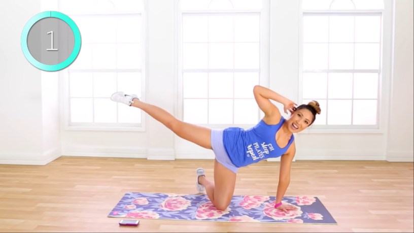 Toning, high impact, beginner’s lower-body focused total body Pilates Intense Interval Training workout by Blogilates