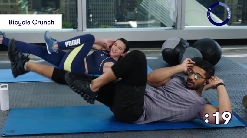 With the four moves being burpees, bicycle crunches, mountain climbers, and squats, and it’s literally filled with three of the moves I hate the most. You’ll feel your whole body working!