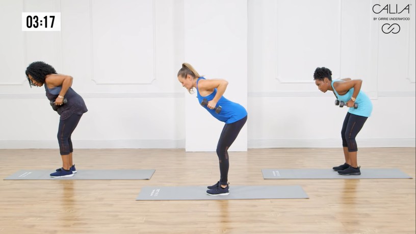 That being said, there is a great variety of moves, and you will definitely get a good upper body workout with this video. They’re also super easy to do, so they’re absolutely beginner friendly. Use light weights for an easier workout, or medium weights for more of a challenge, but make sure you listen to your body. Anna, the host, uses 5 lb dumbbells.
