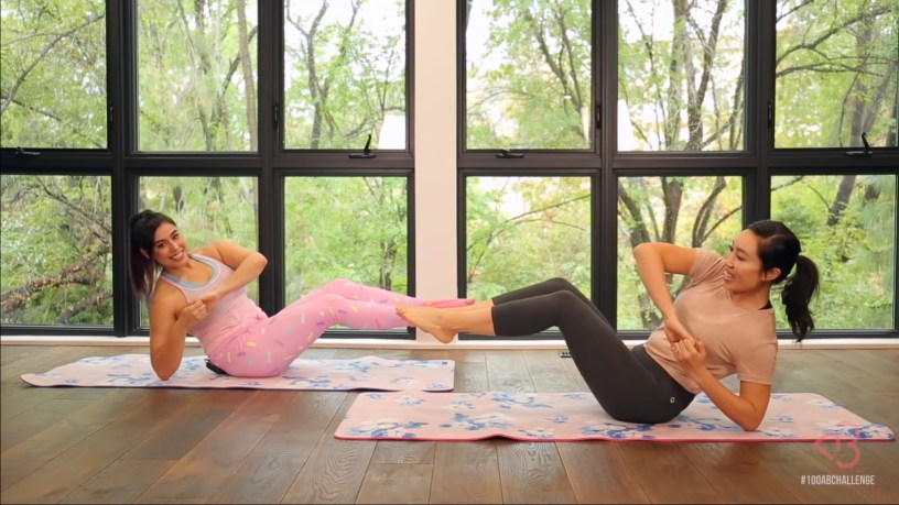 It’s really hard to do 100 Russian twists in a row if you don’t have the proper form. Even with the beginner modifications where you put your feet down, you have to really focus on using your abs, otherwise your hip flexors will work instead.