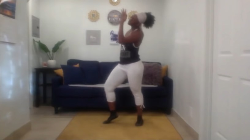 A dance workout composed of a warmup, butt workout, ab workout, and then cool-down. The actual workout is only about 15 minutes long.